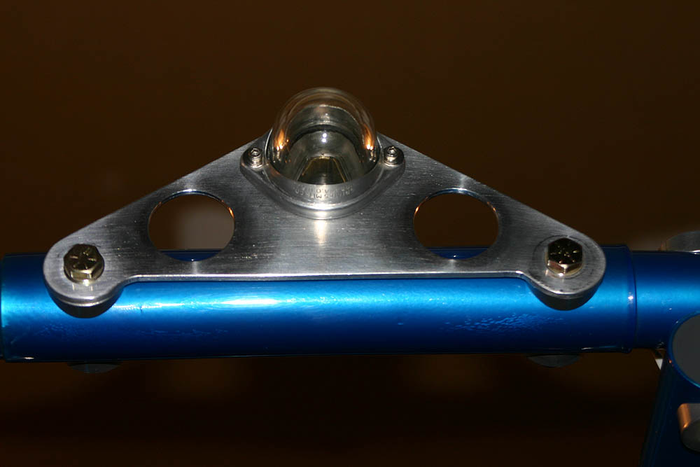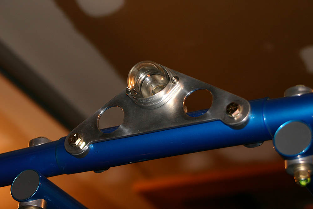 Thanks to Butch Lottman for sharing some photos and reporting about his latest modification: the addition of a Grimes tail light. The material was 3003 .125 aluminum flat stock fabricated into the bracket he made to utilize the saddles at the upper prop guard. He tied the tail light into the strobe/position light circuit. He also removed the incandescent bulb which was pulling over 2 amps and installed an LED rated at .62 amps.